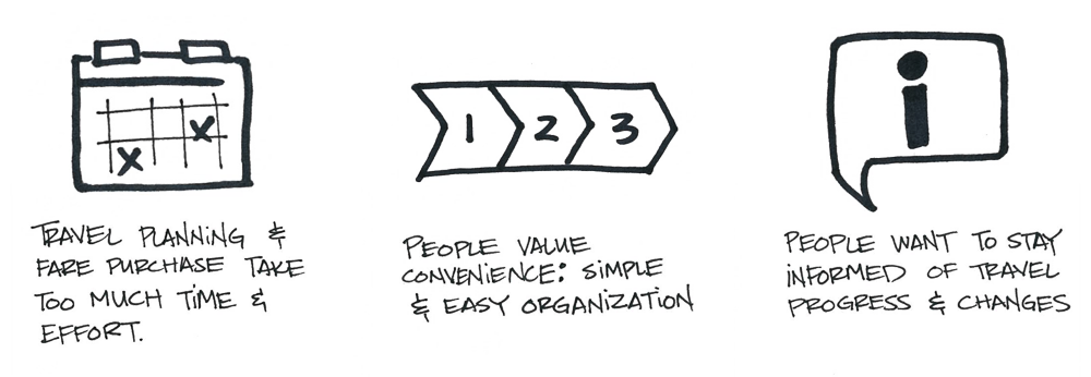 My team conducted a comparative analysis of the ride-purchasing procedures for different modes of travel - including air, rail and ride-hail transport. Doing so allowed us to understand familiar task flows and identify features for consideration.